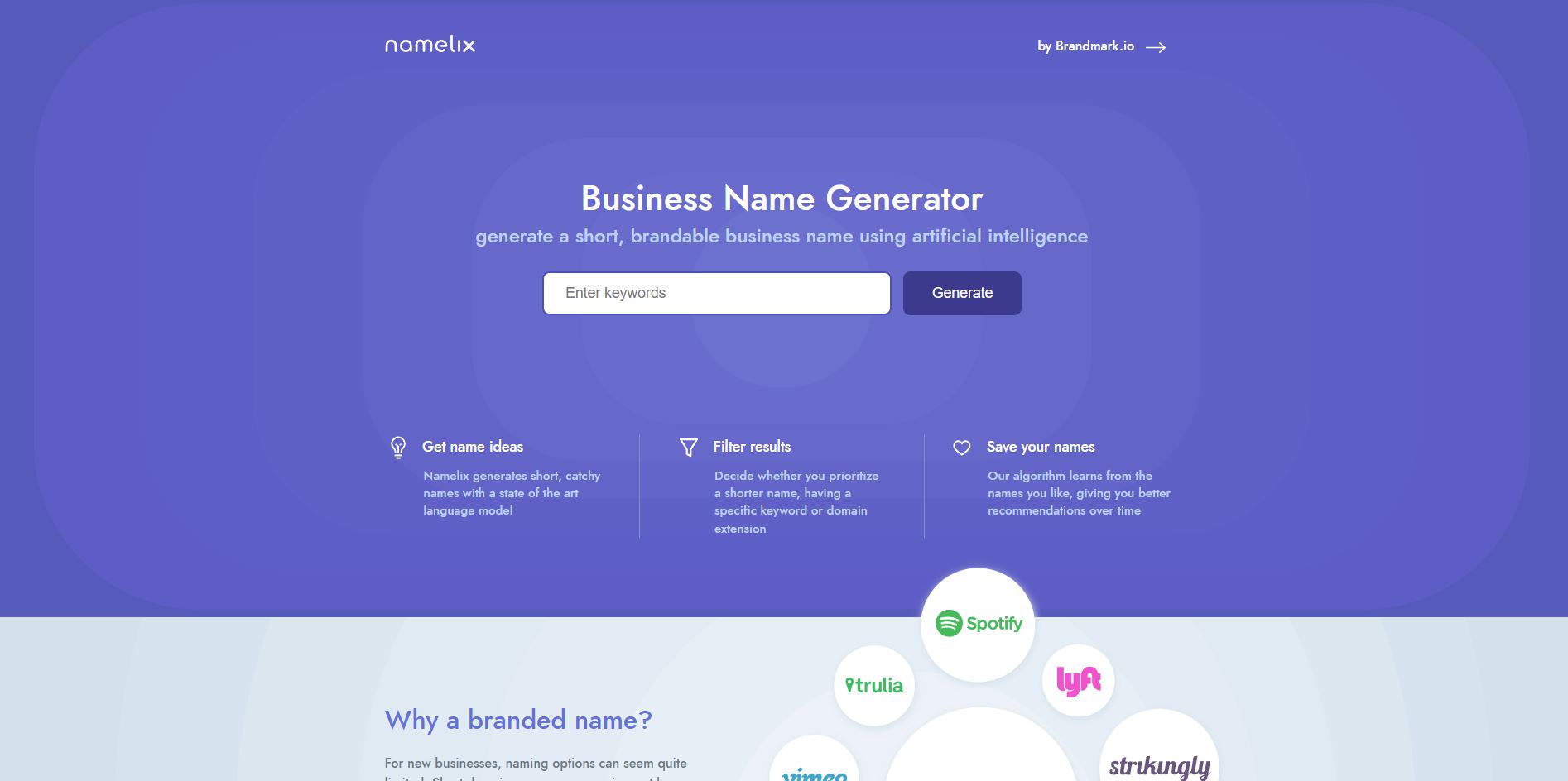 เว็บไซต์ที่จะช่วยสร้างชื่อแบรนด์ง่าย ๆ แค่เราใส่คีย์เวิร์ดที่ต้องการลงไป จากนั้นเลือกสไตล์ของแบรนด์, ลักษณะของชื่อ และข้อมูลอื่น ๆ เพิ่มเติม แค่นี้เราก็จะได้ชื่อเก๋ ๆ ที่ไม่ซ้ำใครแล้ว