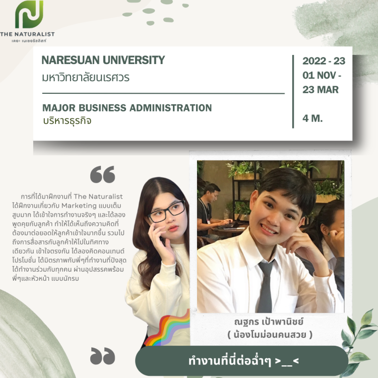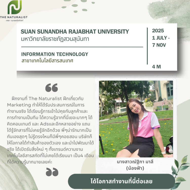 ส่งมอบประสบการณ์การทำงาน ให้กับนิสิตหรือน้องๆเด็กฝึกงานที่มีความประสงค์จะฝึกงานกับเรา ในแผนกต่างๆ โดยฝึกงานให้เหมือนกับได้ทำงานจริง ได้รับประสบการณ์อย่างเเท้จริง เเละบรรยากาศการทำงานร่วมกับพี่ๆ พนักงานท่านอื่น เราพร้อมส่งมอบความรู้ในการทำงานให้ครบเครื่อง ให้นิสิตหรือเด็กฝึกงานสามารถใช้ไปสานต่อในการทำงานในอนาคต ให้สามารถใช้ประสบการณ์ทั้งหมดที่ได้รับ จนเกิดประโยชน์สูงสุด